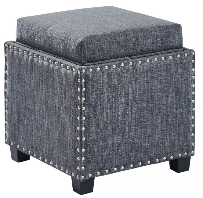 The Armen Living Blaze contemporary ottoman is a great choice for any modern household. This elegant ottoman features a durable wooden frame and beautiful linen upholstery. The Blaze's appearance is further enhanced by a stylish nailhead trim. Need extra space to store your blankets? The Blaze opens up to reveal a handy storage compartment. The Blaze is available in your choice of brown or slate grey linen.