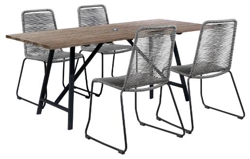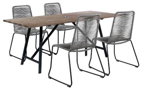 Enjoy a modern outdoor space with the Koala and Koala/Shasta 5 Piece Dining Set in Eucalyptus and Metal with Rope. This 5-piece dining set includes our Koala rectangle 71-inch patio dining table and 4 of our Koala/Shasta rope and steel stackable dining chairs.Read More