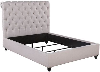 The Doheny Cal King Bed is upholstered in a supple fabric that is accented with button tufting. Nail head trim runs up both sides of the headboard, giving a classic touch to the design.Read More