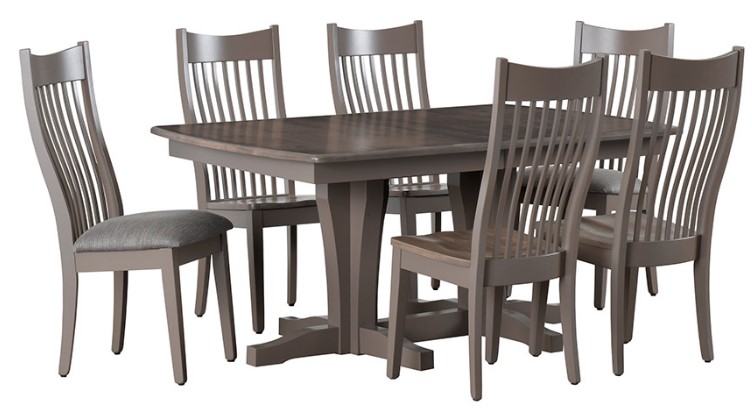 Dine-in style with this Premier Express Ship 7-Piece 42" x 66" Double Pedestal Dining Table Set from Country View Woodworking. Featuring a Brown Maple finish, this dining table and chairs will add a subtle elegance to your kitchen. Complete your dining room setup by incorporating this furniture set into your home.Read More