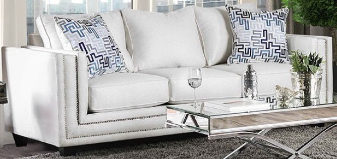 A clean streamlined design gives this set a beautiful aesthetic that can fit into any upscale room transformation. The straight lines of the track arms and skirt are highlighted by twin nailhead trims that trace along the tight angles of this sofa set.Read More