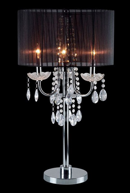 A stylish black shade drapes elegantly over cascading imported crystal droplets that surround a sleek metal base. The striking contrast between the dark shade and shimmering crystals creates a dramatic yet refined centerpiece, adding sophistication and allure to any interior setting.Read More
