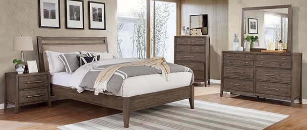 A linen-like fabric padded headboard highlights this bedroom set with a pronounced warm gray wood grain finish. It's a classic standard squared motif that not only makes a great fashionable statement but it adds a sense of sophistication as well.Read More