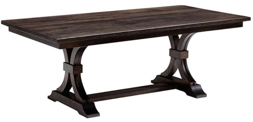 The Farmville Table is shown in Rustic Cherry with the Fog stain and it comes with a length of 84". Add this table/trestle to elevate your dining area.Read More