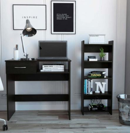Stylish and super versatile, the mod black desk and bookshelf set is the perfect choice for small office spaces. It features a compact computer desk with one shelf and one drawer and a beautiful free-standing bookcase that can be used adjacent or separatelyRead More