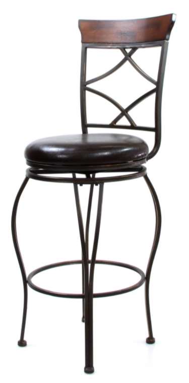 This stools offer a casual look, versatility and sleek style that will enhance any dining area. This set includes two swivel stools, featuring sturdy metal back with "diamond pattern" design and a contrasting wooden trim, padded polyurethane seat cushion, curved metal legs and footrest ring. Handsomely crafted in antique metal finish.Read More