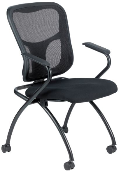 Good looking, airy, and comfortable. Designed with arms, an ergonomic spine up the mesh back and a well-padded seat, upholstered in soft black fabric, this chair keeps your guests relaxed and comfortable as they interact with you.Read More