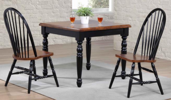 Two coordinating chairs have spindled legs and arching spindle backs that give lots of support and look good too! High quality hardwood construction throughout makes this set a great choice.
