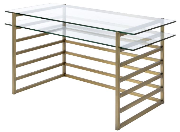 An antique gold finish base and an elegant glass top