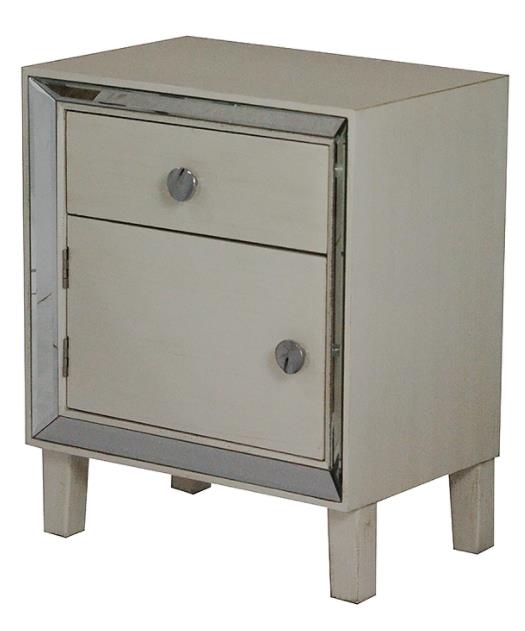 Get this antique white wood finished mirrored glass cabinet to ensure plenty of extra space in your living room. This beautiful accent table has a drawer and a door hiding additional storage space. This charming side table is made from high-grade MDF and wood.Read More