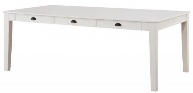 What about briskly taking a family morning coffee, this rectangular dining table is your number one choice. Featuring a wooden top with storage drawers seating on wood tapered legs, this inspiring piece represents nothing short of elegance and luxury. The modern styled design finished in a blossom antique white will continually warm the hearts and create a unique atmosphere in any dining room.