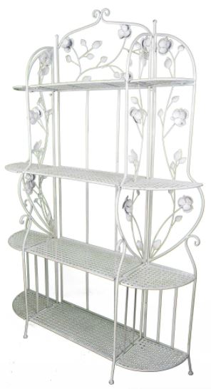 Increase your storage space, while embellishing your home and proving your superior fashion taste with this captivating and functional Antiqued White Floral 4 Shelf Bakers Rack. Its light and airy design is a wonderful example of vintage charm.Read More