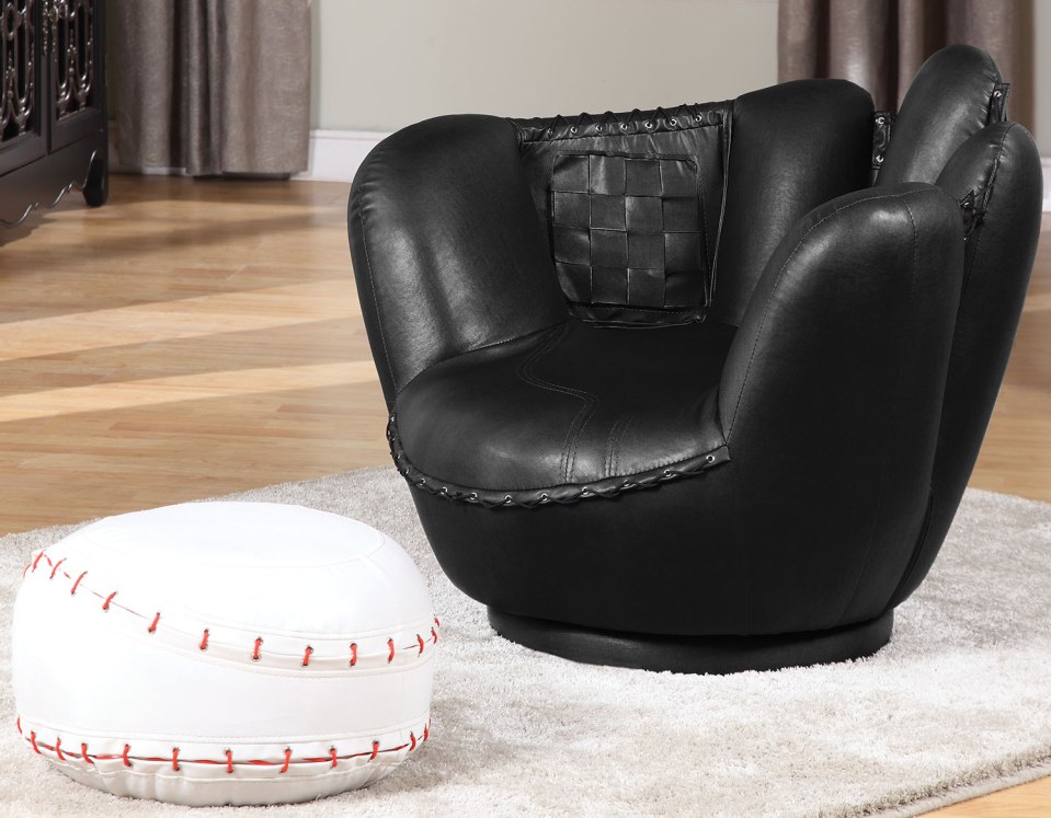 Create a stunning atmosphere in your room with this set of chair and ottoman. The swivel arm chair comes with a corresponding ottoman and they are both padded with Pu material. Our comfortable set is complemented by black baseball in an all-star design that will be perfect for any youth room.Read More