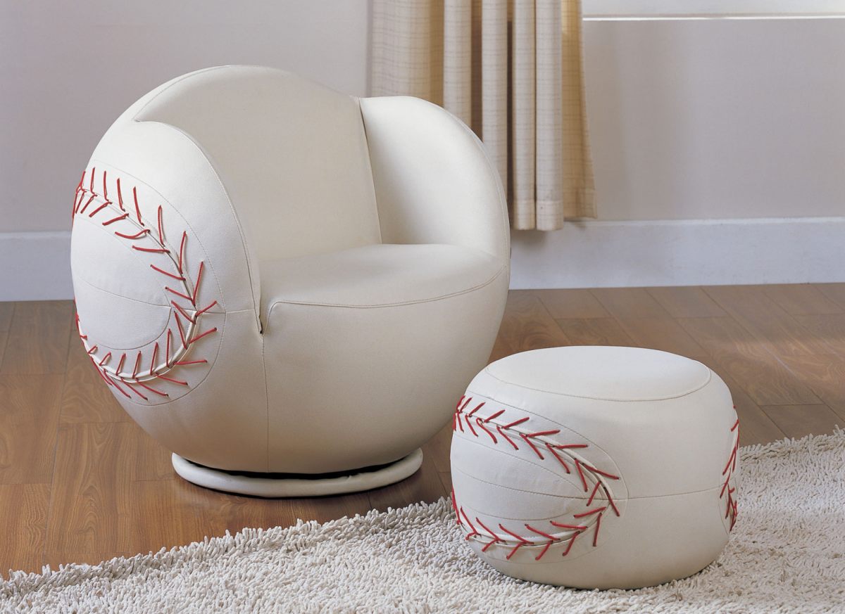 Create a stunning atmosphere in your room with this set of chair and ottoman. The swivel arm chair comes with a corresponding ottoman and they are both padded with Pu material. Our comfortable set is complemented by white baseball in an all-star design that will be perfect for any youth room.Read More