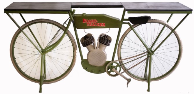 Add a beautiful touch to your bar area with our vintage motorcycle bar. It is made of metal and mango wood colored in green and serves as a mini bar, snack or display area. This piece will also catch the attention of every guest in your home.Read More