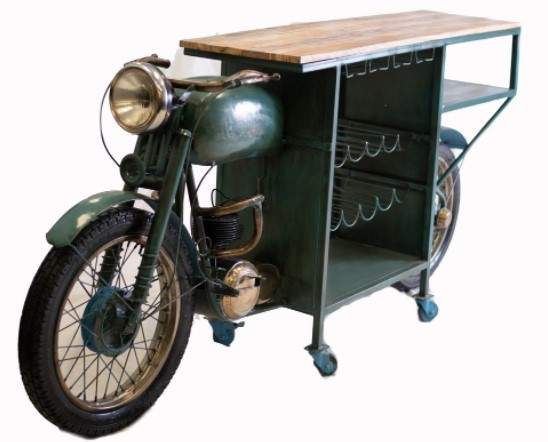 Our chic option for your bar area is this motorcycle wine bar. The product features a mini area for wine, space for stemware, a wine rack shelves for adequate storage. It made of mango wood and metal constructed in antique style.Read More