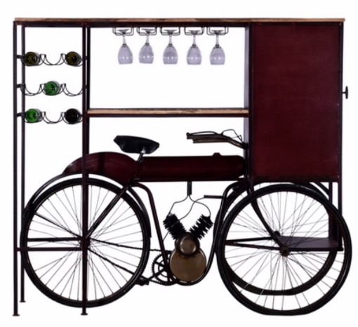 This vintage tricycle delivery bar turns your bar area into a center of attraction. Made of wood and metal in maroon color, this piece provides a durable and classic way to serve wine. It features sufficient area and components for storage and display; add it to your home for an update.Read More