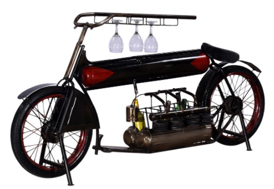 Get this beautiful option for your bar area. Our motorcycle wine rack is made of metal crafted in antique style and provides a classic way to display wine and stemware. It also becomes the focal point in any decor and comes with a black and red finish.Read More