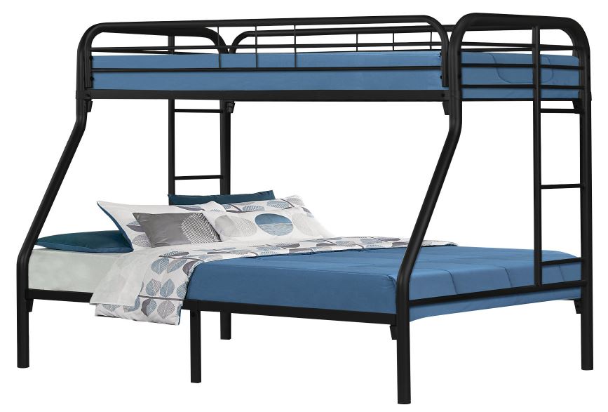 The fun space saving design of this black metal twin/full bunk bed will make a wonderful addition to your child's bedroom. Bottom bunk is a full sized bed with twin size bed for the top bunk.Read More
