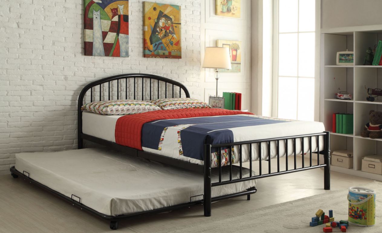 Create an extra space in your bedroom with this optional trundle. The full trundle consists of twenty slats made of top quality black metal tube and definitely a perfect match for full over full bed. Need something unique for your bedroom? this is a great option for you.Read More
