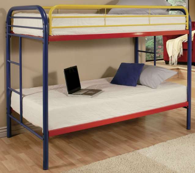 This bed featuring a two-inch metal tube frame and easily accessible, built-in ladders, our bunk collection is designed to make sleeping comfortable and enjoyable without stress. The maximum safety of your kid is ensured with the full length guard-rail on the top bed. Mattress not included. Some assembly required. The top bed has weight capacity of 150Lbs while the bottom bunk can support a weight up to 200Lbs.