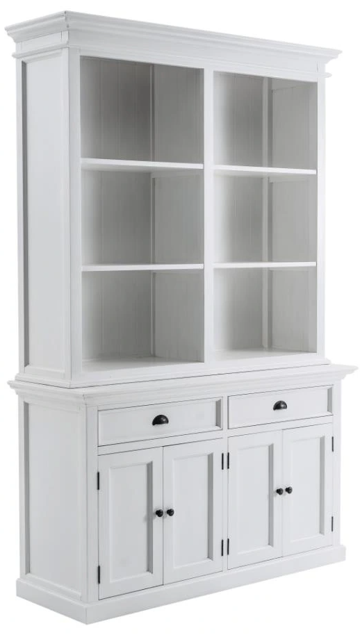 Make a statement with the Classic White Buffet Hutch Unit with 6 Shelves. Handcrafted from mahogany wood with an all-white semi-glossy finish this unit has been systematically built from two different elements. Equipped with multiple storage options this module can be utilized as a kitchen cabinet for your dinnerware.Read More