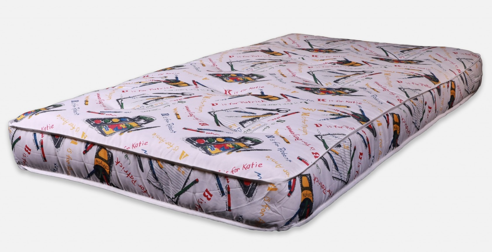 With a super cool crayon pattern, this 8" crayon double foam twin mattress is the ideal mattress for a bunk bed, day bed, or futon. The double cotton/polyfoam blend gives this mattress comfort and durability.Read More