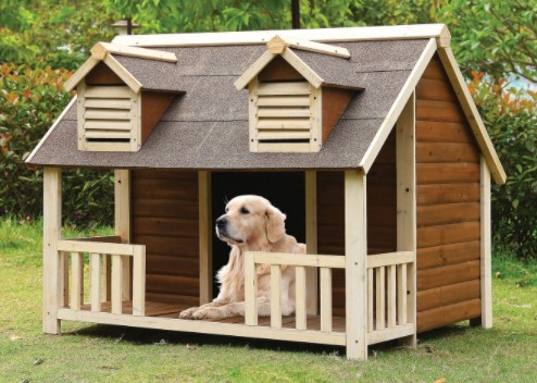 The backward slant of the roof is made to prevent water from gathering in front of the pet house while the floor is conspicuously elevated to have your canine pal home and dry.