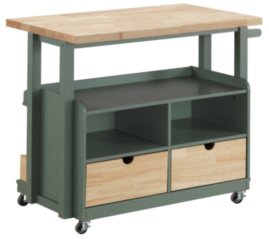 This Kitchen Cart is furnished with caster wheels for ease of movement from one section of the room to another. This beautiful modern showpiece flaunts a stylish green finish and natural wood top. It matches perfectly with cottage, contemporary or beach decor designs. Its indeed a must have for every home.