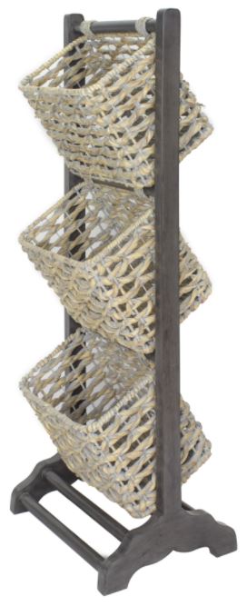 This magazine rack is marvelously made from high grade MDF and wood. Its a lasting piece, certain to serve well for years to come. Additionally, it has three fully removable water hyacinth woven baskets, which will provide you with ample storage space. The painstaking attention given to details in this cabinet and its unmistakable quality will add a flicker of innovativeness to the mood of your home. This magazine rack offers plenty of storage space and will make any room look better simply by being there. It would fit great in your bathroom, entryway or kitchen.