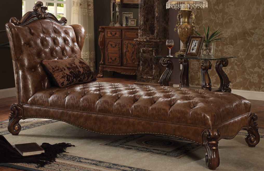 Elaborate carving detail along its wood legs and sides add to its sophisticated style. Introduce a collection of timeless taste and appearance to your room decor with an upholstered chaise that will make any home feel refined and comforting.