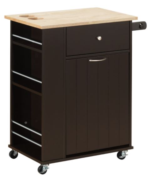 This delectable wooden cart presents a whole new and sophisticated way of entertaining guest. It is also very functional as a storage, simplified and versatile. For storage purposes, this kitchen island offers ample space including a door, drawer, bottle holders, towel rack and a built-in knife block.Read More