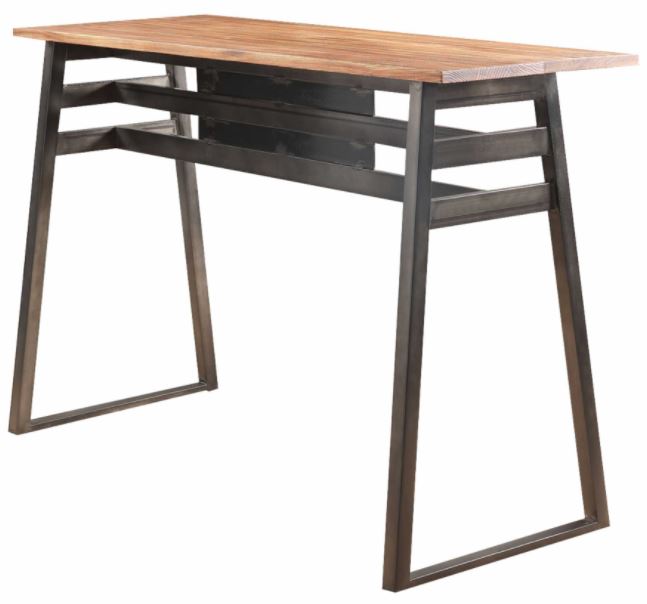 Bring a stunning piece to your well decorated home with this industrial styled bar table. Featuring a sled base, this streamlined bar table comes in a natural finished wooden top and gunmetal finished metal base. Invite guests to gather around for cocktails and conversation with this beautiful bar table.Read More