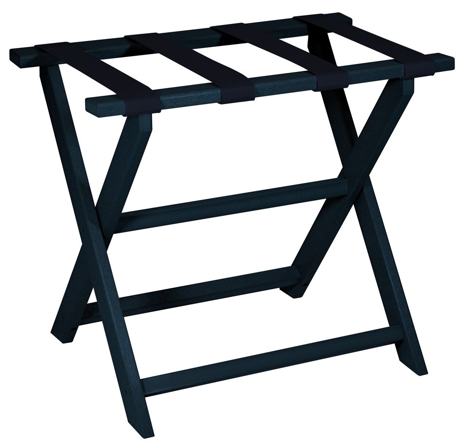 Feel better about your impact on the earth with this made in the USA, earth friendly navy blue folding luggage rack. This commercial grade quality rack is made of eco-friendly post consumer recycled plastic and has 4 super sturdy navy nylon straps.Read More