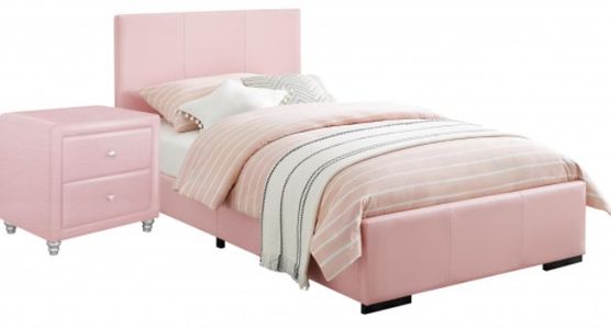 This bed has a unique pink coloring that looks great in any room. With this platform bed, no box spring is needed though can be used based on your mattress height preference. A complete slat system extends the life of your mattress. Don't be fooled by other beds with 4 or 5 slats and expect the mattress, not to sag. Our slats are properly spaced to provide full coverage and maximum support. Takes any standard mattress.
