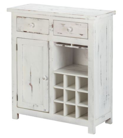 A petite marvel, rustic white wine cabinet with 2 drawers is an amalgamation of function and charm. The white distressed finish enhances the rustic appearance in any room. Handcrafted from solid hardwood, the wine cabinet ingeniously accommodates 9 bottles of wine and up to 4 wine glasses.Read More
