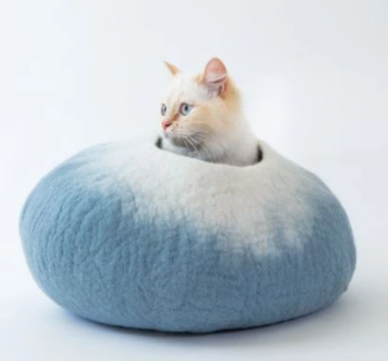 The Sky Blue and White Wool Cat Bed is a cozy and comfortable cat cave handmade from all natural wool. Each bed is hand crafted by skilled artisans with the highest quality soft merino wool to ensure that your pet is happy, safe, and healthy.Read More