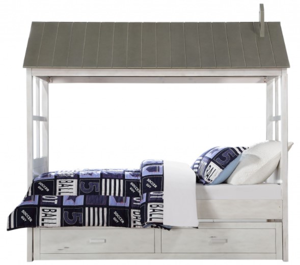 Your children will adore the magical bed that evokes the spirit and appeal of an outdoor tree house. This unique bed sits inside a classic house frame, with beadboard panel headboard, footboard, and roof and features eight open windows in a weathered white and washed gray finish.Read More