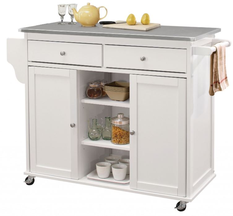 The frame is made with white finish and topping this is a beautiful stainless steel countertop.