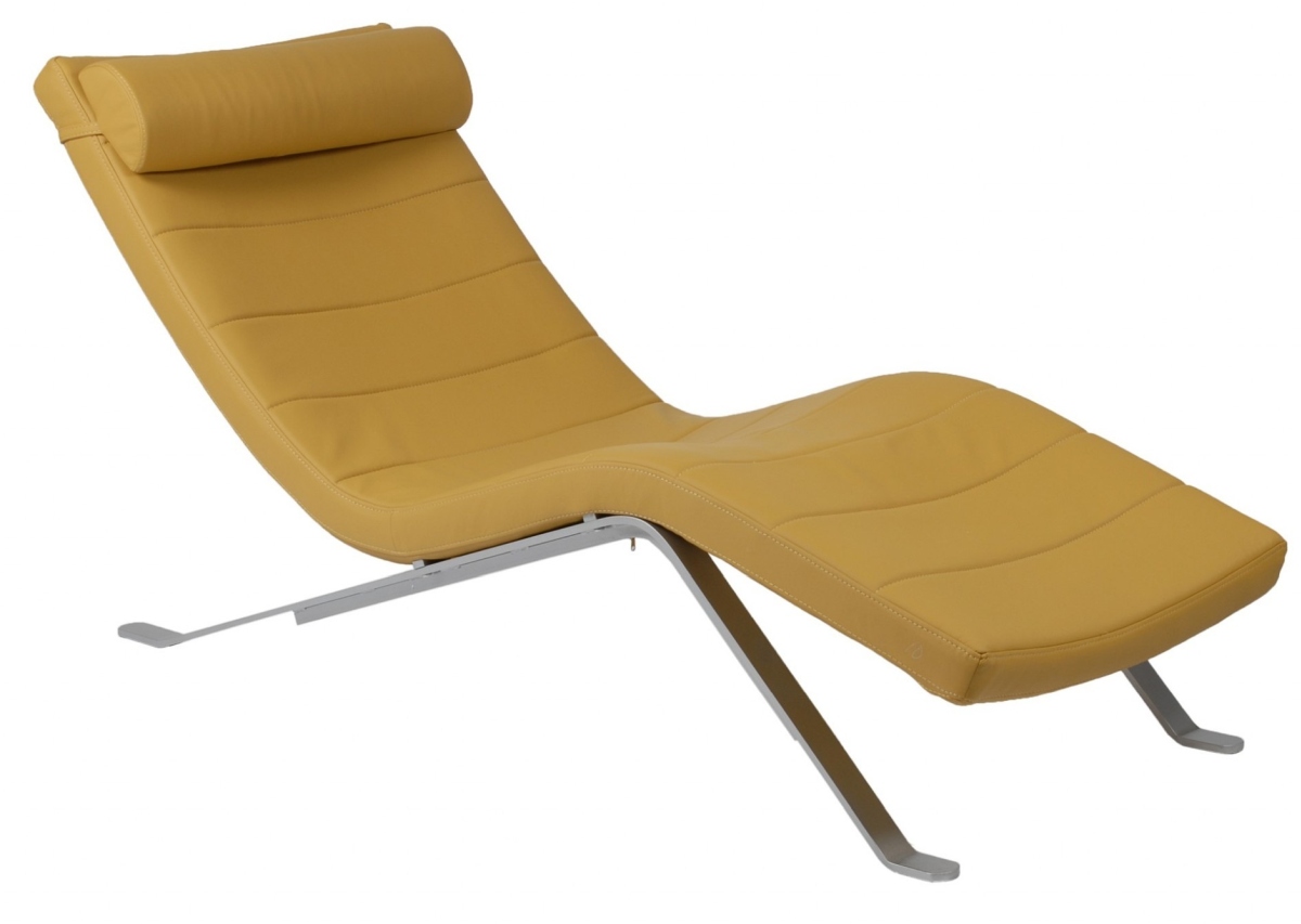 Make your living room the perfect place to relax with this Goldenrod Faux Leather and Chrome Wavy Chaise Lounge Chair. This piece has the classic chaise lounger shape and is covered in a soft and gorgeous goldenrod faux leather upholstery with horizontal line seam detailing.Read More