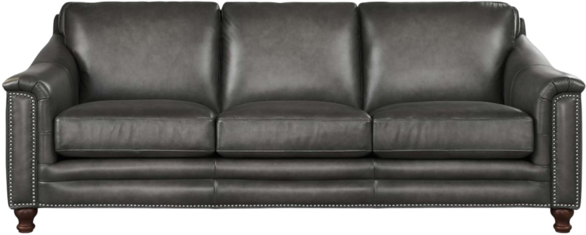 Premium Leather: Top-grain leather is upholstered on the seating areas and armrests. Split-grain leather is used on the sides and back.