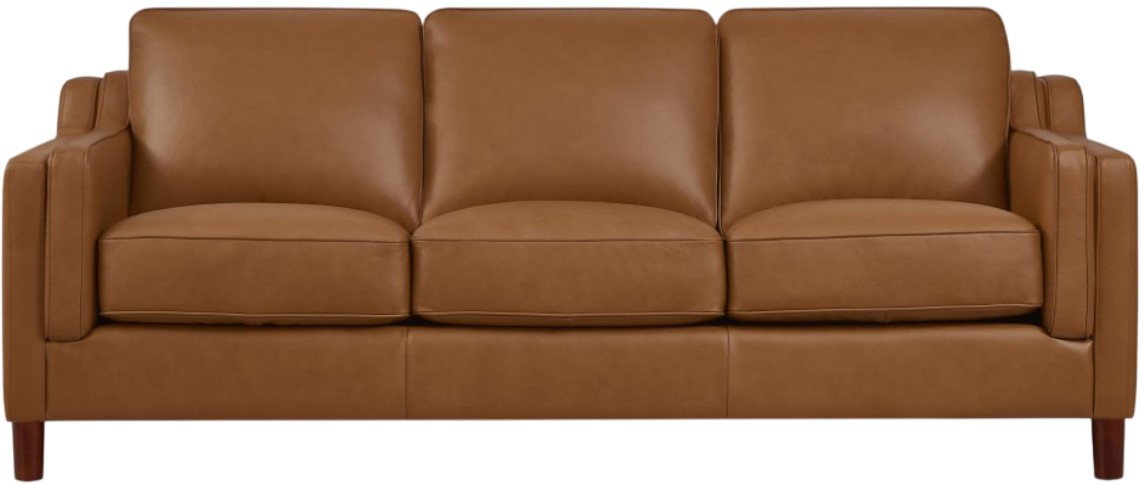Premium Leather: Top-grain leather is upholstered on the seating areas and armrests. Split-grain leather is used on the sides and back.