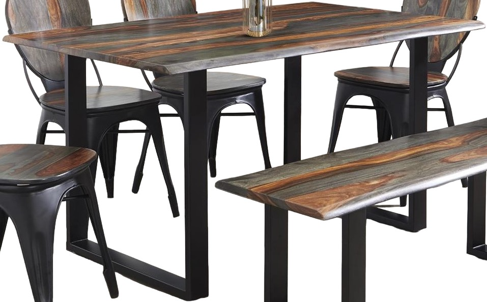 The Crofford group is constructed, using tongue and groove joint methods, of Sheesham timber in our water-resistant lacquer-sealed Pacific Steel finish. The U-shaped supports of this dining table are black powder-coated iron.Read More