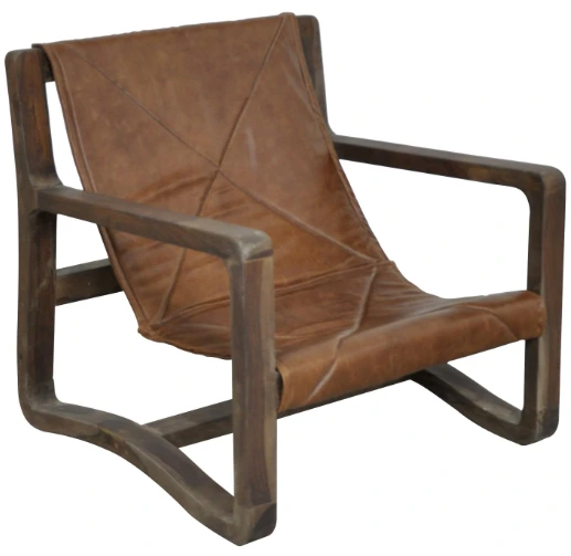 This chair is constructed, using tongue and groove joint methods, of mango wood in a water resistant lacquer sealed blended finish. the "sling style" upholstery is leather with decorative seaming.Read More
