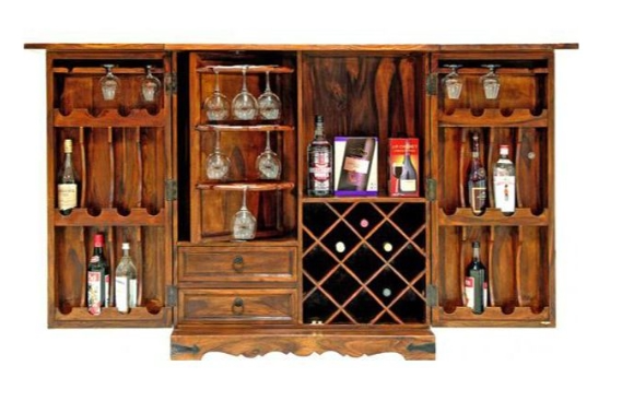 The Jaipur Furniture Ganga Range Brown Large Bar Cabinet features a warm brown finish and rustic charm. It offers ample storage with shelves and compartments, making it perfect for organizing drinks and barware stylishly.Read More