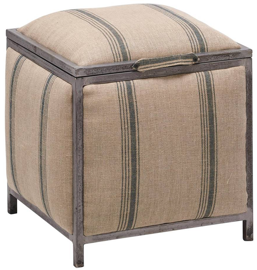 The frame of this versatile storage ottoman is constructed, using MIG welding joint methods, of cast iron in a brushed finish. Features include include slow close hinges and offset striped linen upholstery.Read More