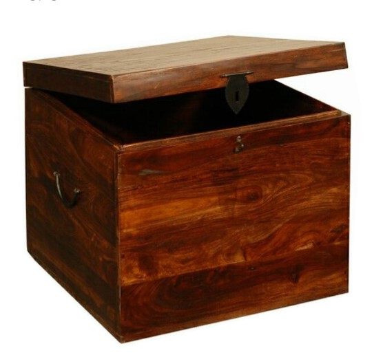 This versatile trunk features hand distressing, iron hardware and slow close interior hinges