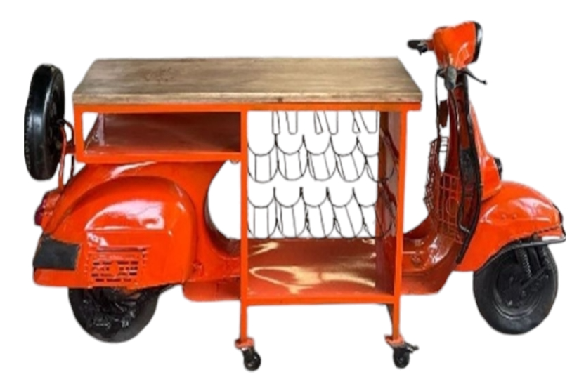 The Jaipur Furniture WOW Range Orange Bar Cart features a vibrant orange finish and modern design. Its sturdy construction and wheels provide mobility, making it perfect for entertaining and showcasing drinks stylishly.Read More