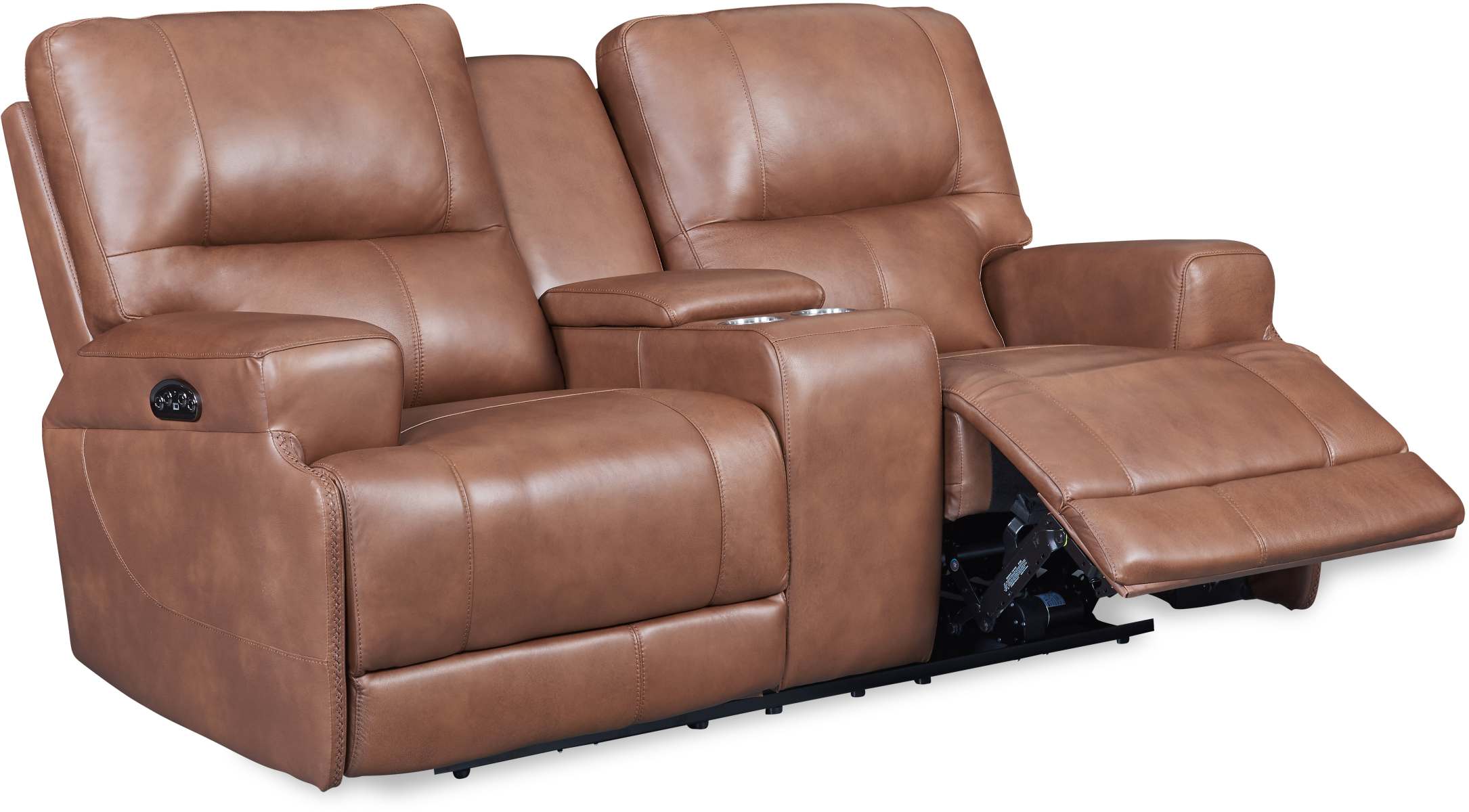 Leather Italia™ Power Console Loveseat features lay-flat mechanism, USB charging port, and attached back.Read More