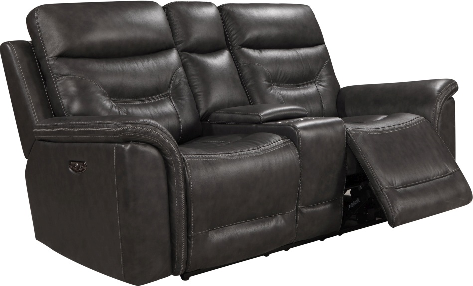 Leather Italia™ Bullard Grey Power Reclining Sofa from the Shae Collection will look amazing in your living room. It comes with attached back and seat cushions and brown leather upholstery.Read More